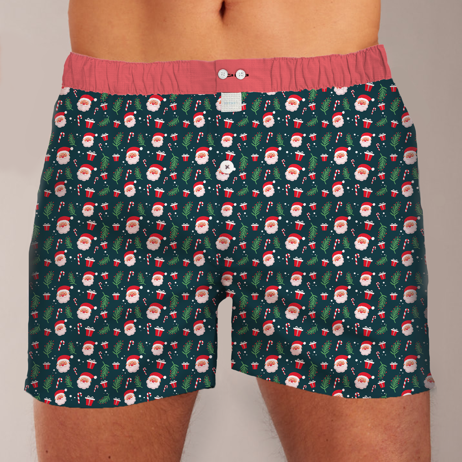 New - Elegant dark green boxershort with Santa Claus print, combined with a pastel green waistband. The perfect boxershort for the Christmas holiday! ✨