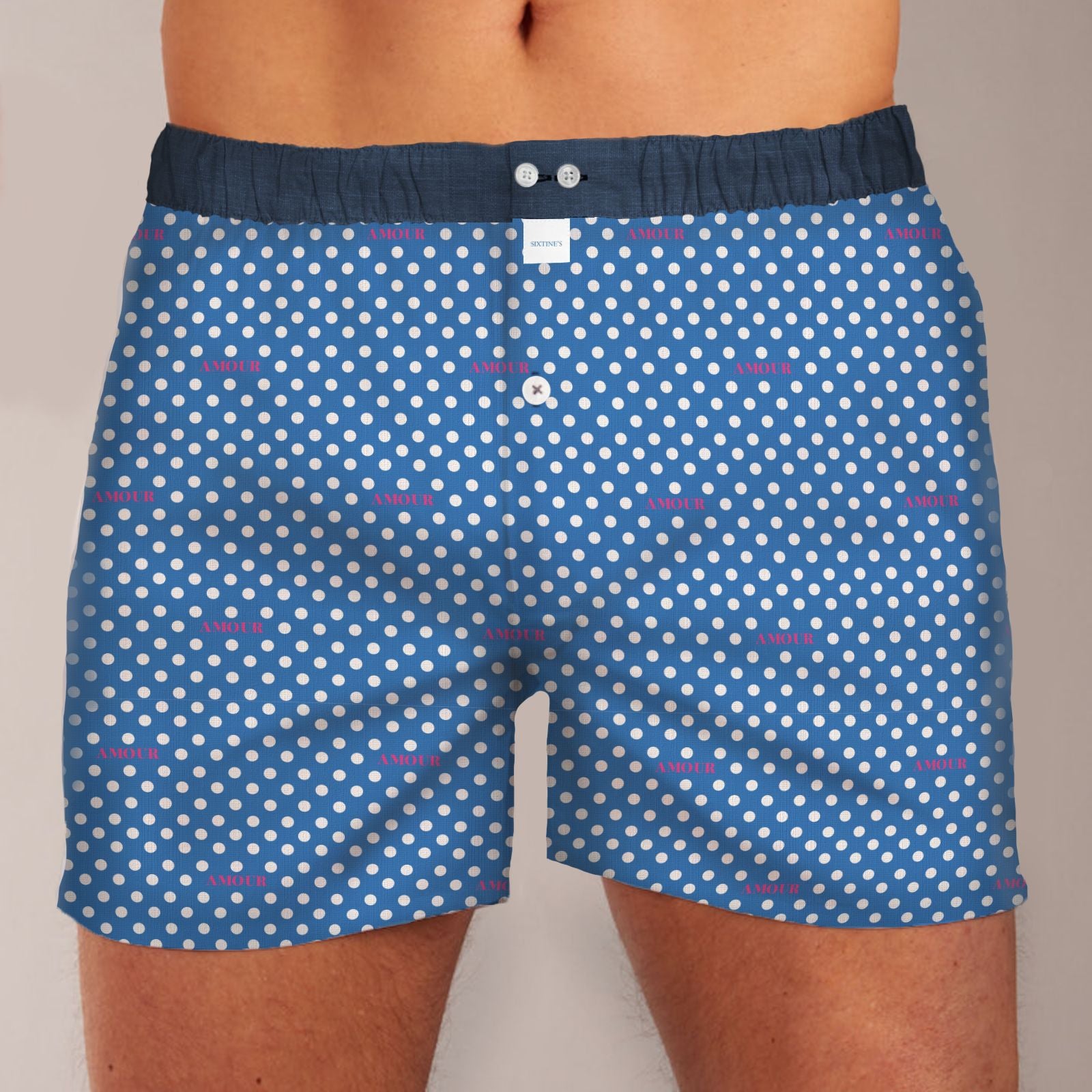 New - Elegant ocean blue boxershort with dotted AMOUR print, combined with a light blue waistband. The perfect boxershort for Valentine's day! ✨