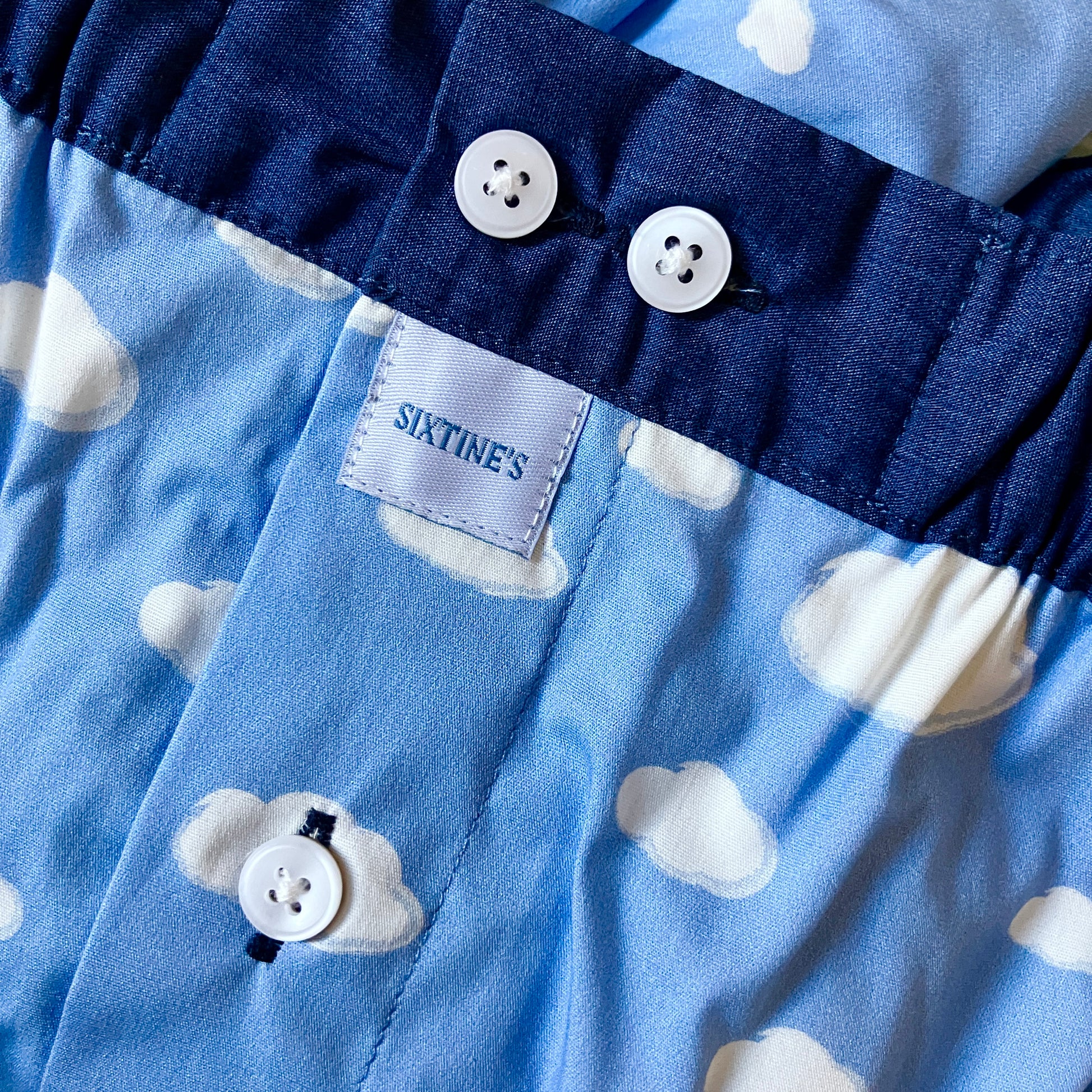 New - Elegant sky blue boxershort with cloud print, combined with a dark blue waistband. The perfect boxershort for a classic dreamy vibe"! ✨