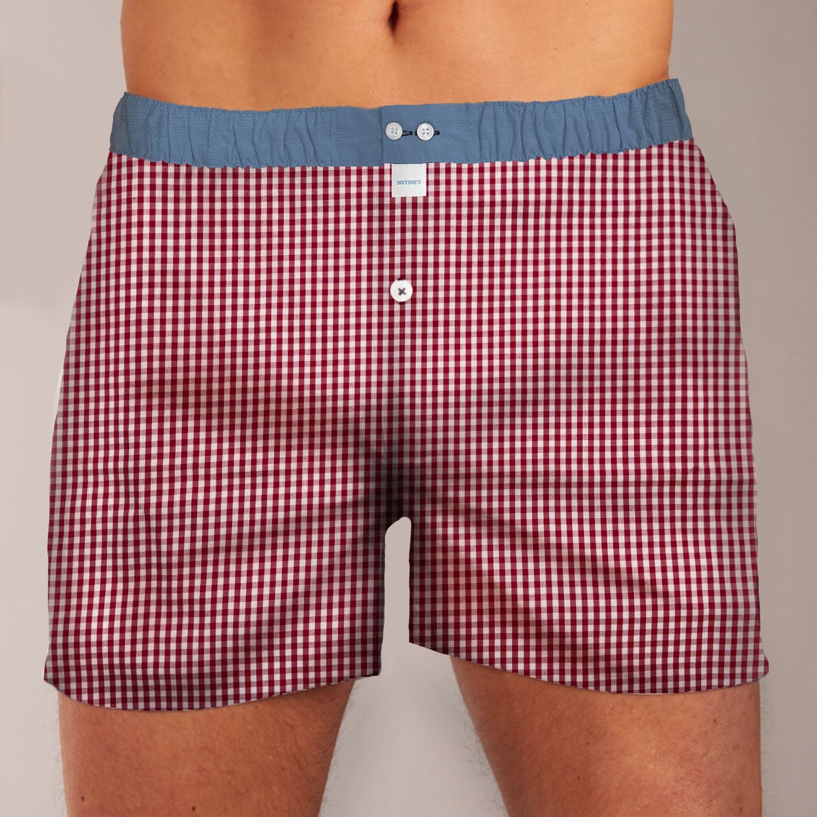 New - Elegant red tartan boxershort, combined with a soft pastel blue waistband. The perfect boxershort to match your gentlemen's look! ✨