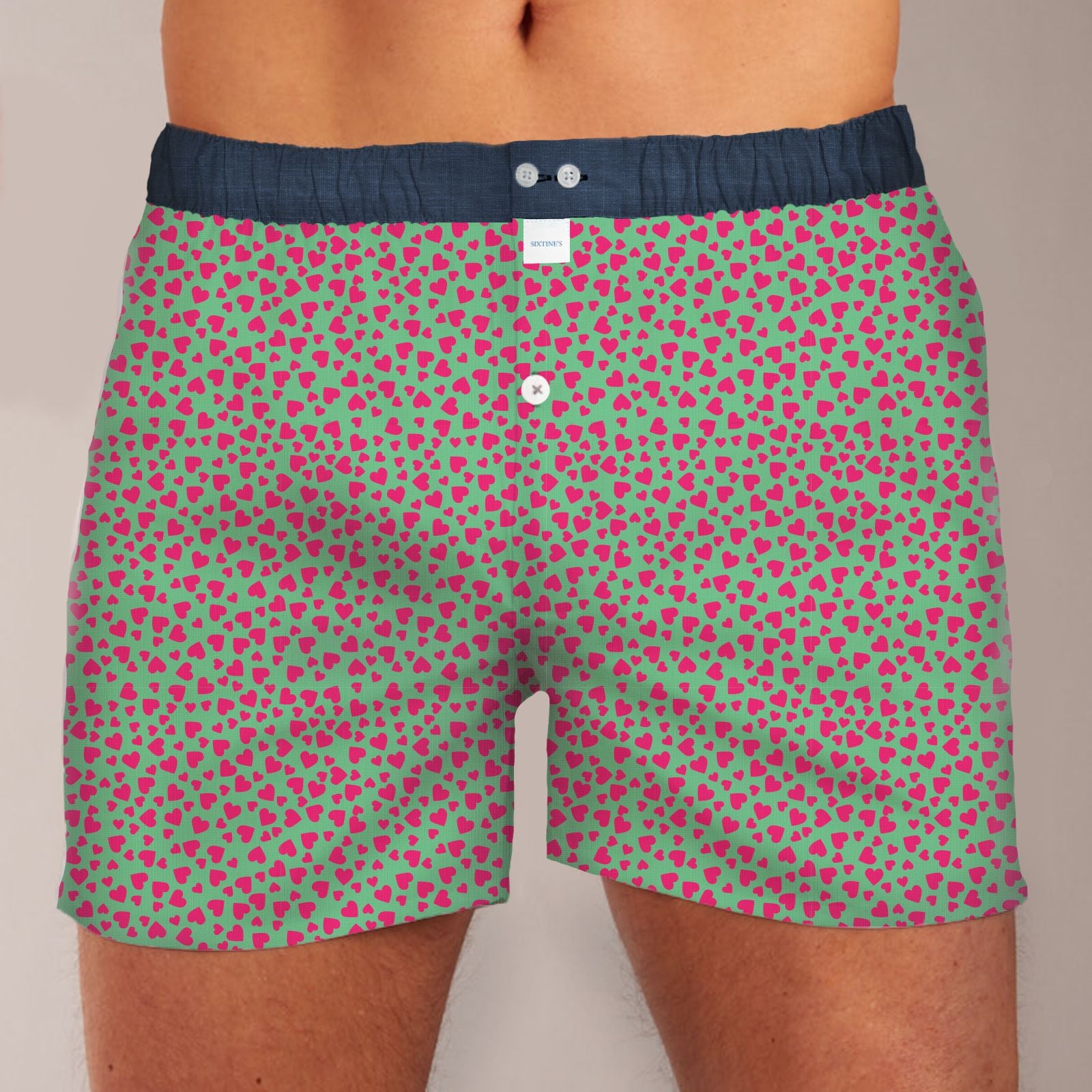 New - Elegant green boxershort with red heart print, combined with a dark blue waistband. The perfect boxershort for Valentine's day! ✨