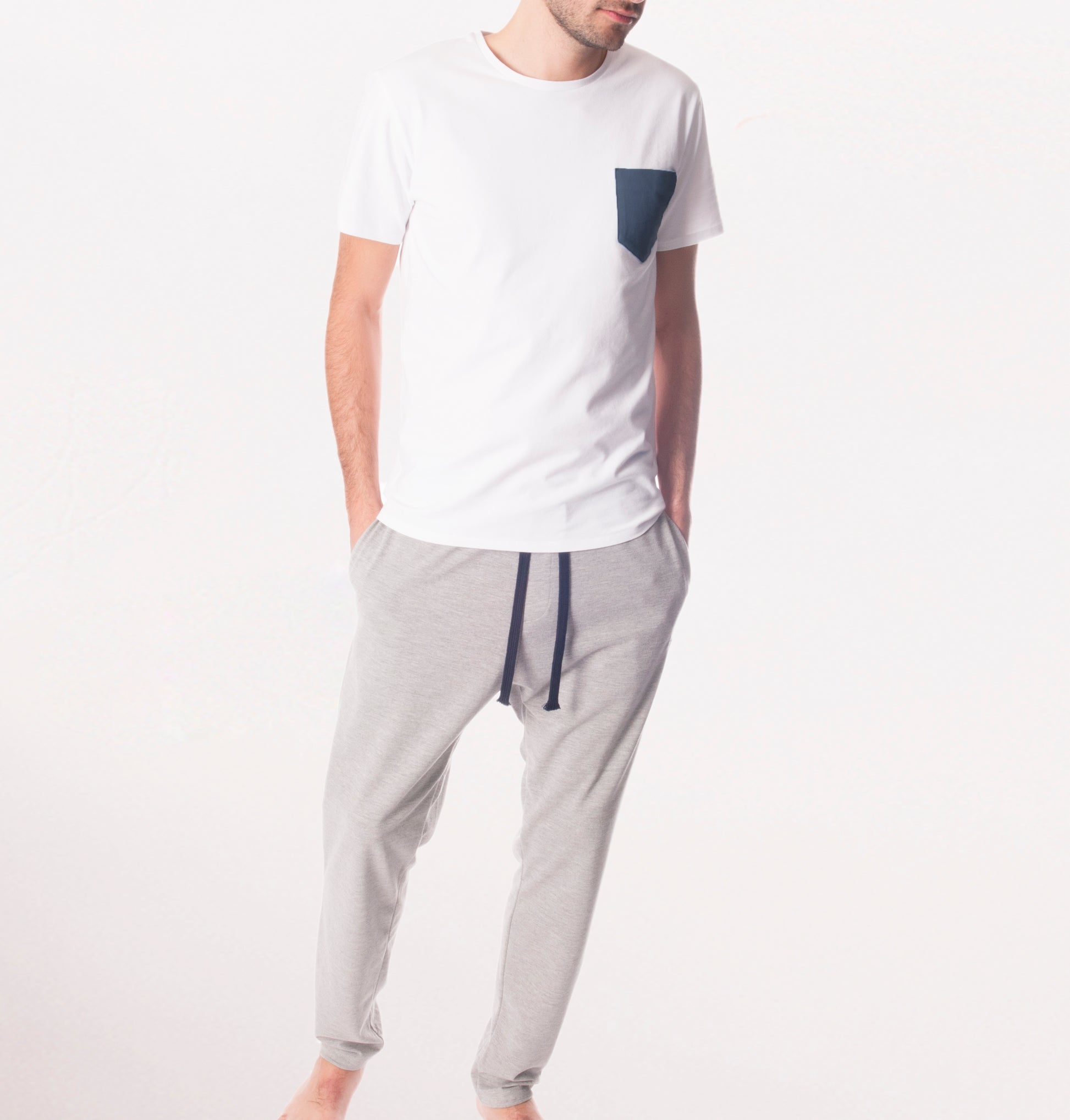 NEW IN // Loungewear set for men. Soft grey pants + Soft white t-shirt with pocket. The perfect loungewear for every elegant gentlemen.